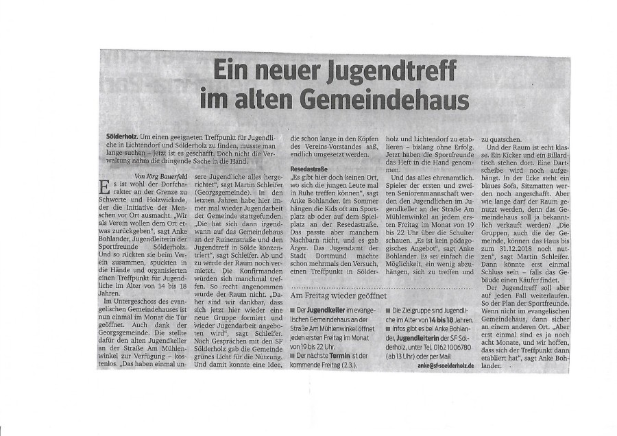 ab dem 02.02.: neuer Jugendtreff für die Dorfjugend