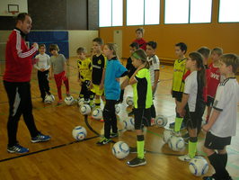 Mit diesen Mobilen – bis unter´s Dach vollgepackten Kleintransportern – fährt der DFB bundesweit bis an die Eingangstür der Vereinsheime und somit direkt an die Basis des Fußballs. Ziel ist es, den Nachwuchstrainern direkt und unkompliziert praktische Tipps für ihren Trainingsalltag zu geben. So wurden die E+F Jugendtrainer des SFS bei dem Demonstrationstraining, welches von zwei lizensierten DFB-Teamern durchgeführt wurde, aktiv einbezogen. Im Vordergrund stand die Philosophie des modernen Kinder- und Jugendfußballs, die den Anwesenden durch zahlreiche Übungs- und Spielformen nahe gebracht wurde. Im Anschluss an die Trainingseinheit ging es mit einem Infoblock weiter. Dabei wurde über aktuelle Themen des Fußballs, insbesondere über speziellen Qualifizierungsangebote des DFB und FLVW informiert.