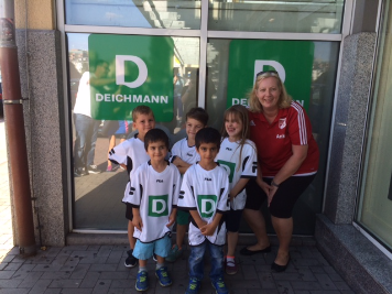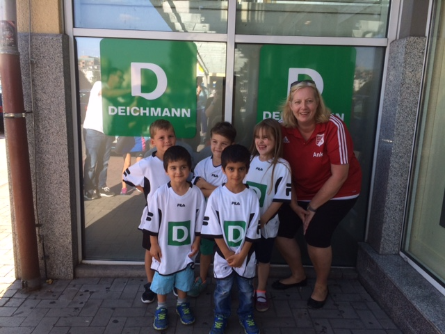 Dank unseres Trainers Stefan haben wir bei einer Trikotverlosung von Deichmann einen Satz Trikots für die Minis gewinnen können. Ein Teil der Minis hat dann auch gleich die gewonnene Trikots angezogen.
