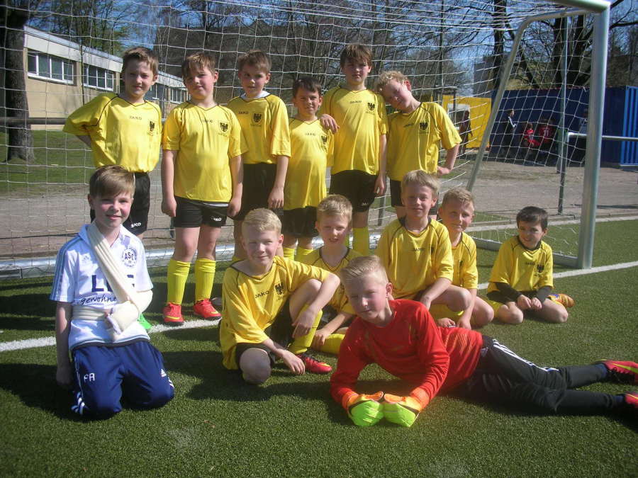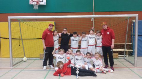 meisterschaften der Junioren statt. Da viele Kinder unseres Vereines in den Osterferien im Urlaub sind, haben wir in diesem Jahr nur die E- Jugend angemeldet. Diese konnte Ostermontag in der Halle Hörde vollständig überzeugen. In Ihrer Gruppe gewannen Sie gegen die Kreisliga A Mannschaft des Hörder SC mit 3:2, gegen die Kreisliga B Mannschaft des VFL Hörde mit 2:0 und gegen die Kreisliga C Mannschaft des Tus Kruckel mit 4:0. Damit sind wir ungeschlagen in die Zwischenrunde gegangen, wo wir leider das einzige Spiel des Tages gegen die Kreisliga B Mannschaft des Tus Eving-Lindenhorst mit 0:3 verloren haben. Im direkten " Verliererspiel" konnten wir dann erneut den Hörder SC mit 3:0 schlagen und sind damit eine Runde weiter. Am Sonntag den 24.4. wird in Brackel die Endrunde gespielt.