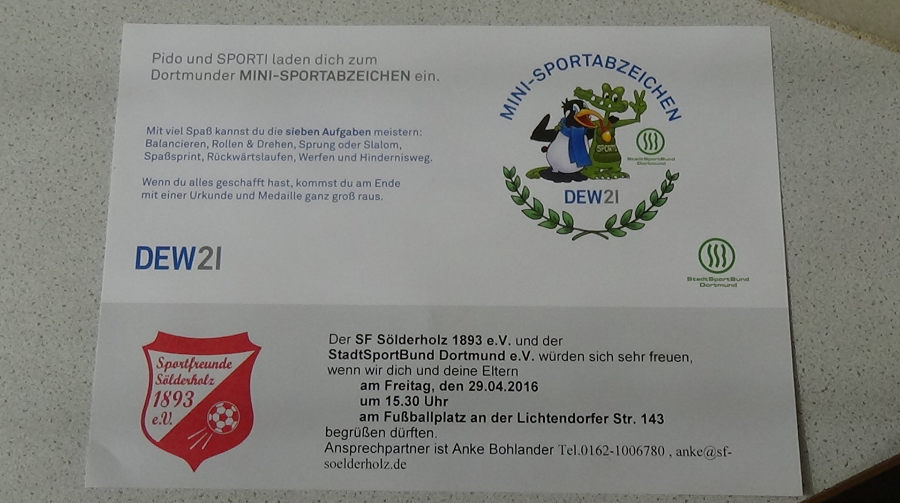 Unsere ausgebildeten Gruppenhelfer aus der eigenen Fußballjugend werden mit Unterstützung des StadtSportBundes Dortmund dieses Sportabzeichen für alle Vorschulkinder auf unserem Fußballplatz an der Lichtendorfer Str. 143 anbieten. Anschließend können die Kinder noch einbischen Fußball spielen, wenn sie möchte.